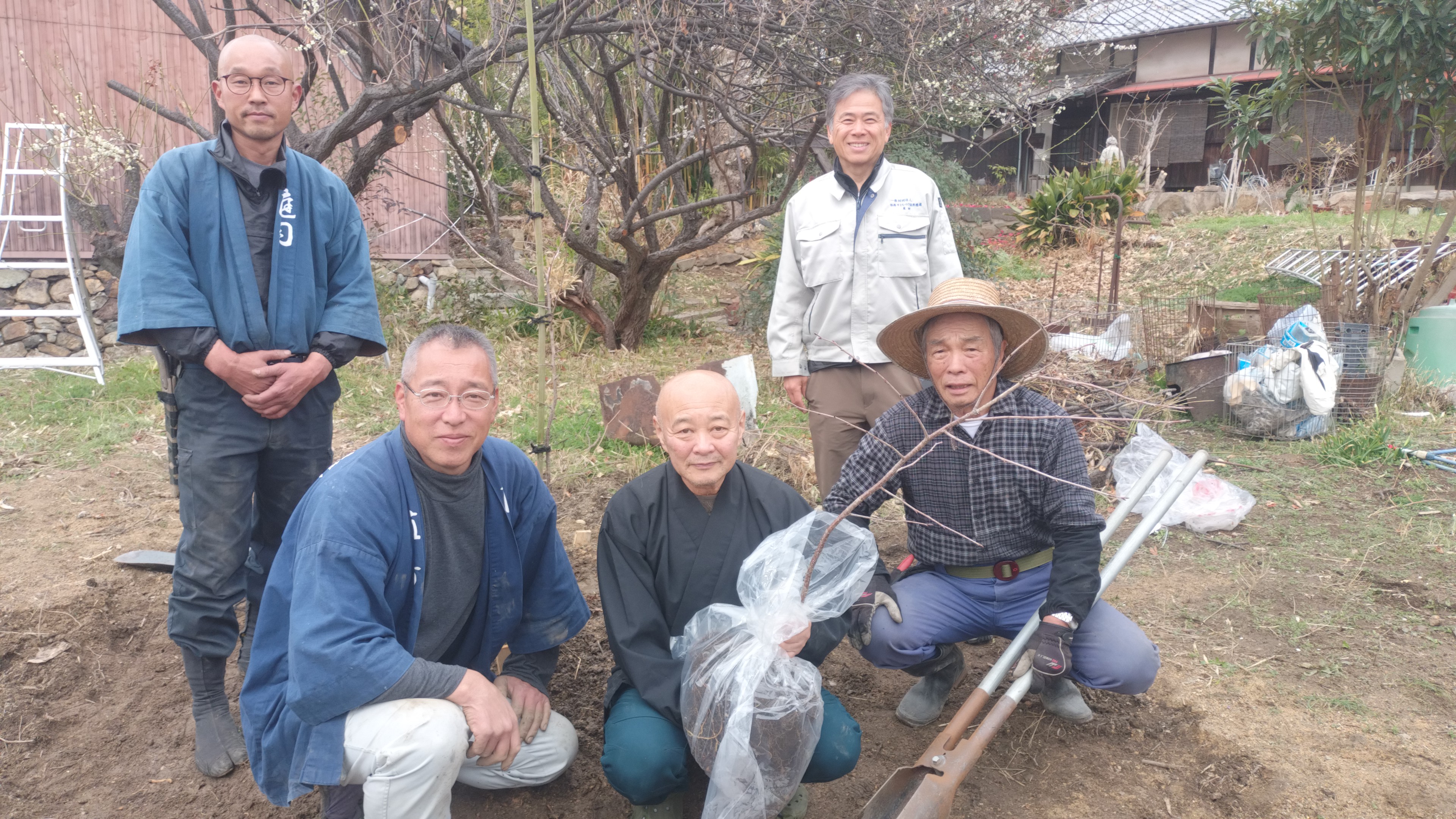 手柄ザクラの植え込み 📅 2026.02.28 昨日、京都より株式会社植音さんより、三和寺敷地内の整備に4人で来られました。 その目的の一つとして奥田社長に手柄ザクラの苗3本の植え込みを指導頂きました。 ← 戻る