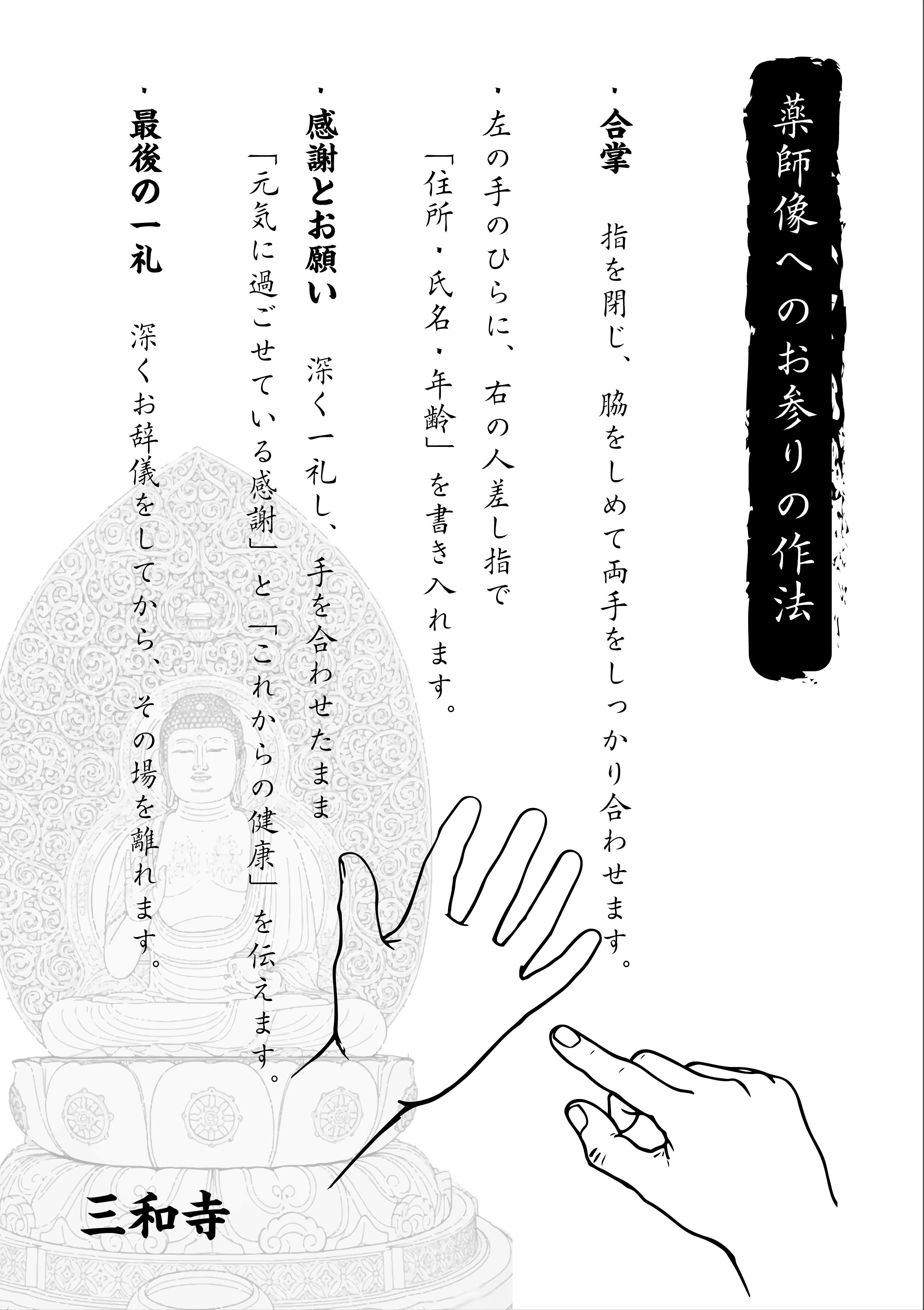 薬師堂へのお参りの作法について副住職さまより指導頂いて解説書を作成してスタンプラリーに訪れた方に配布致しました。